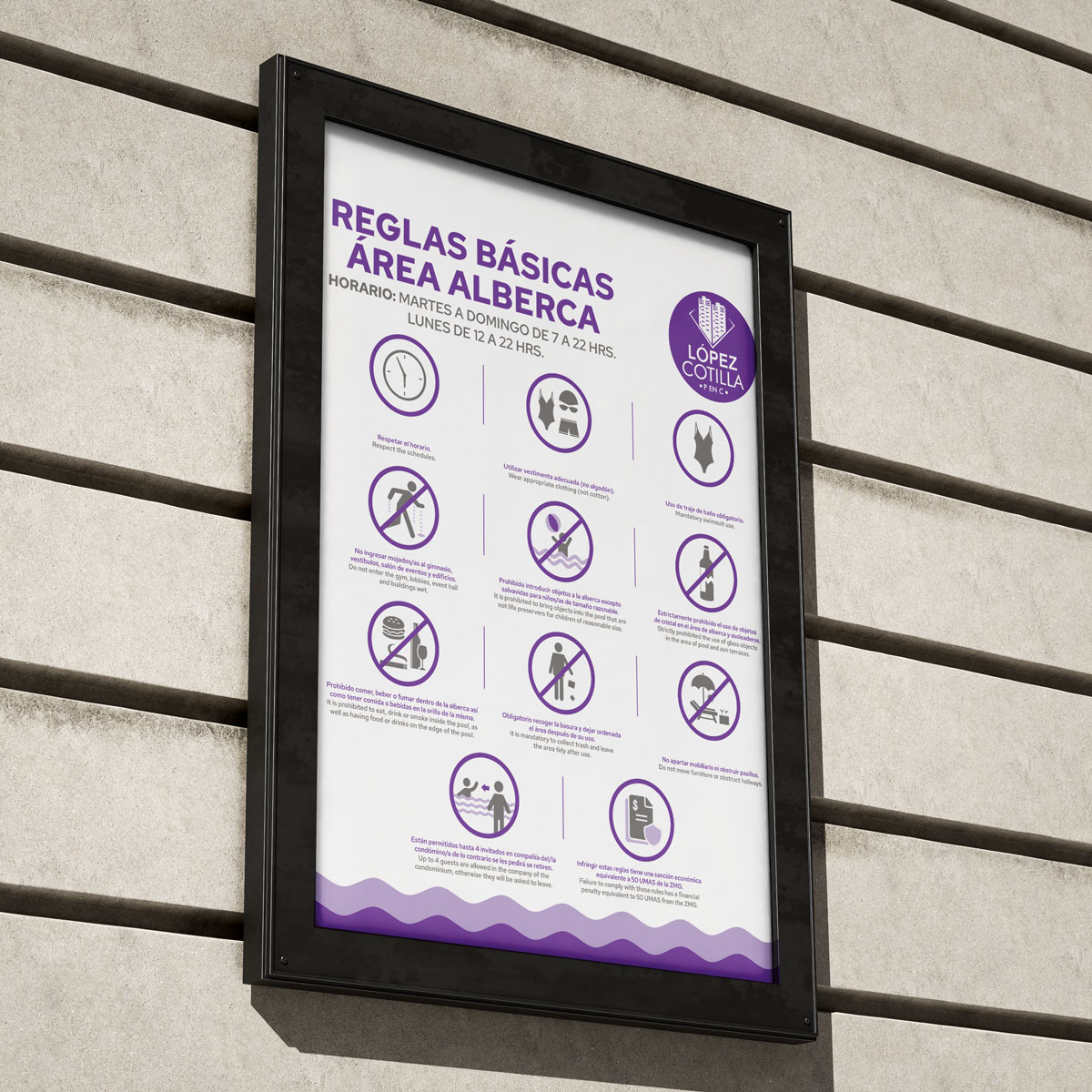 Combine el diseño de su marca con una comunicación efectiva mediante letreros que indiquen accesos, direcciones y espacios en su establecimiento.